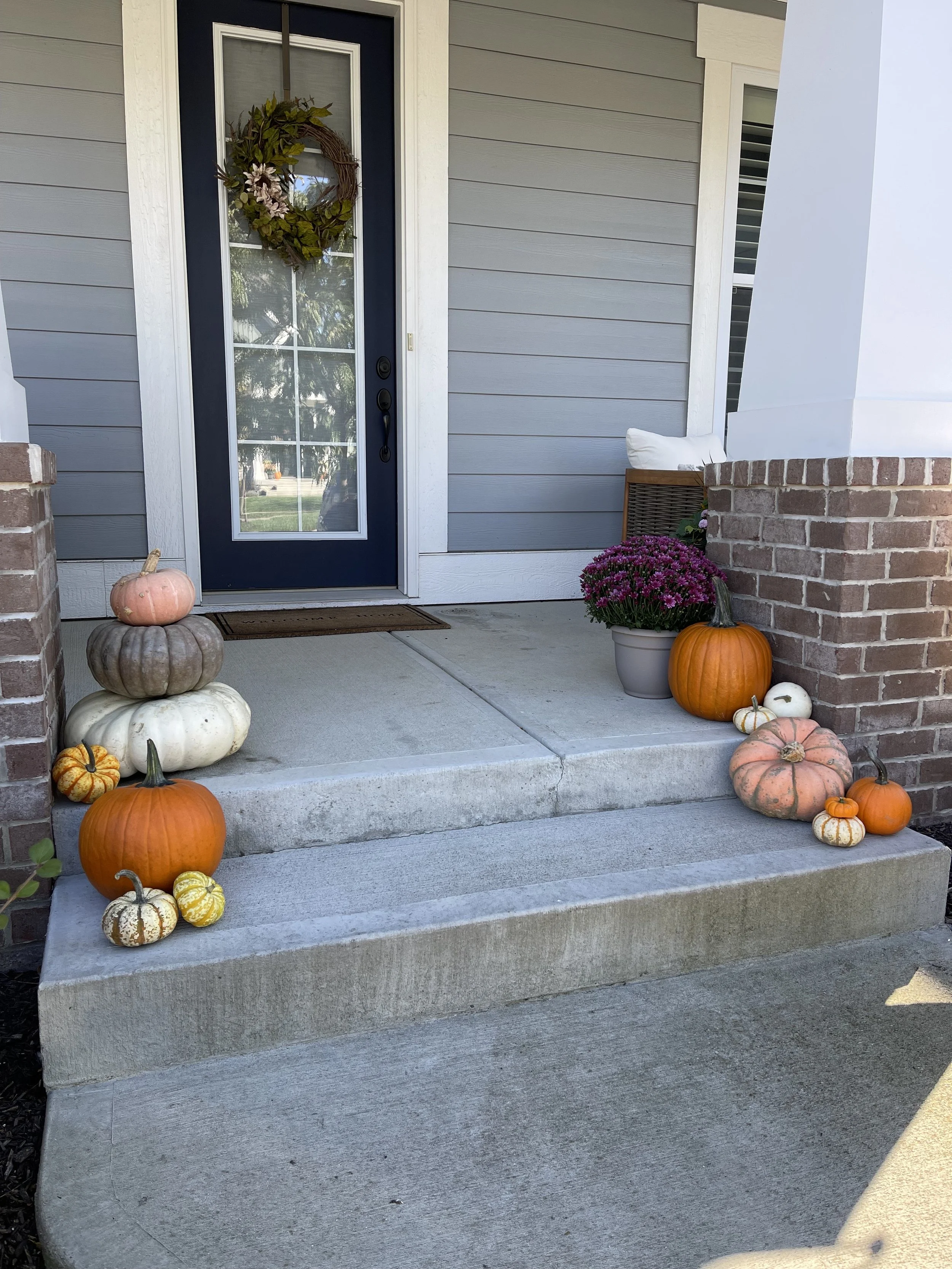 Image 1 of 2 Image 2 of 2 Simple Porch Package (Harmony) from $215.00 Our simple package is perfect for smaller porches and simple layouts.2 Jacks (standard pumpkins)4 Specialty pumpkins6-10 Mini pumpkins1 Mum (9in) Disposal Option: Include pickup and disposal No disposal service Quantity: Add To Cart Added! Our simple package is perfect for smaller porches and simple layouts.2 Jacks (standard pumpkins)4 Specialty pumpkins6-10 Mini pumpkins1 Mum (9in) Corn Stalks $25.00 Add To Cart Mum Add-On $25.00 Add To Cart Kale Add-On $25.00 Add To Cart Cabbage Add-On $25.00 Add To Cart